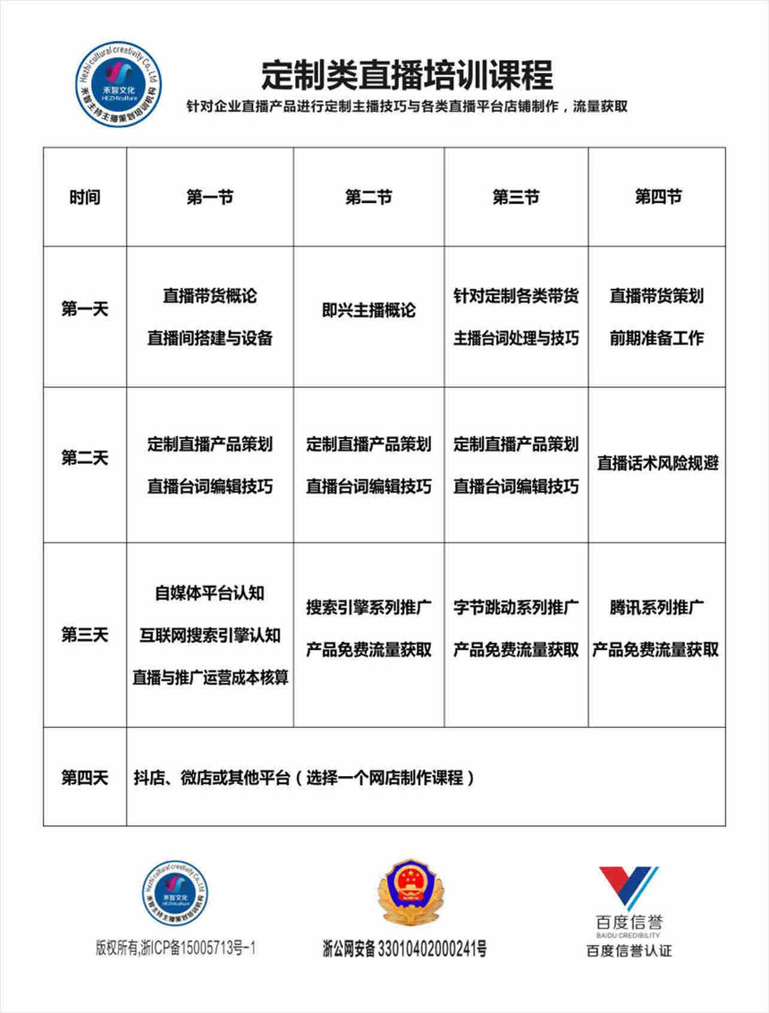 授课方式:科班理论教学+真实直播演练+电视台录制设备+店铺合理架构+站外